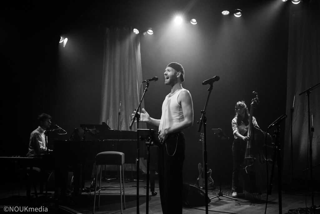 Mats wordt begeleid door piano, staande bas en drums.